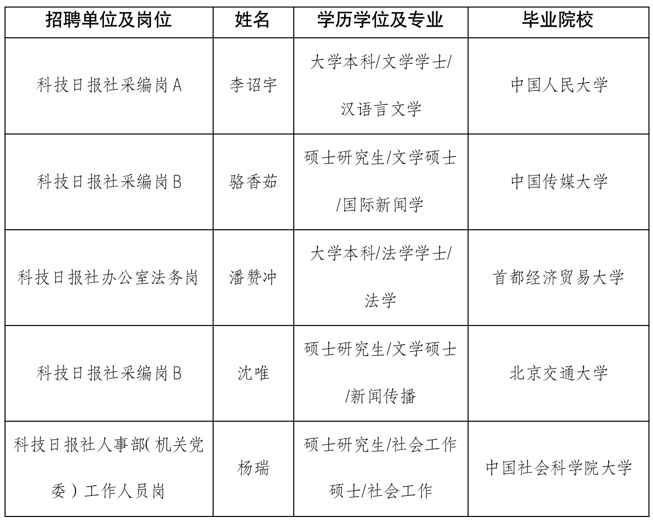 采編崗B擬招聘3人,此次公示2人。有1名應(yīng)聘人員尚未完成招聘程序,另行公示。