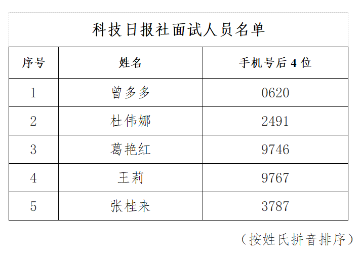 根據筆試成績,共5人參加本次面試,具體名單見附件。