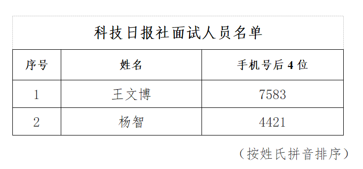 附件:科技日?qǐng)?bào)社面試人員名單