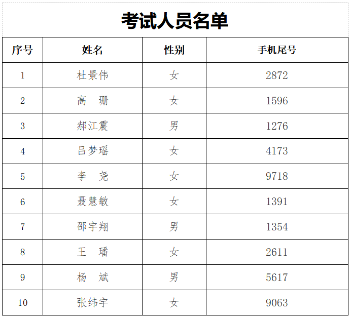 參加筆試人員名單見后。