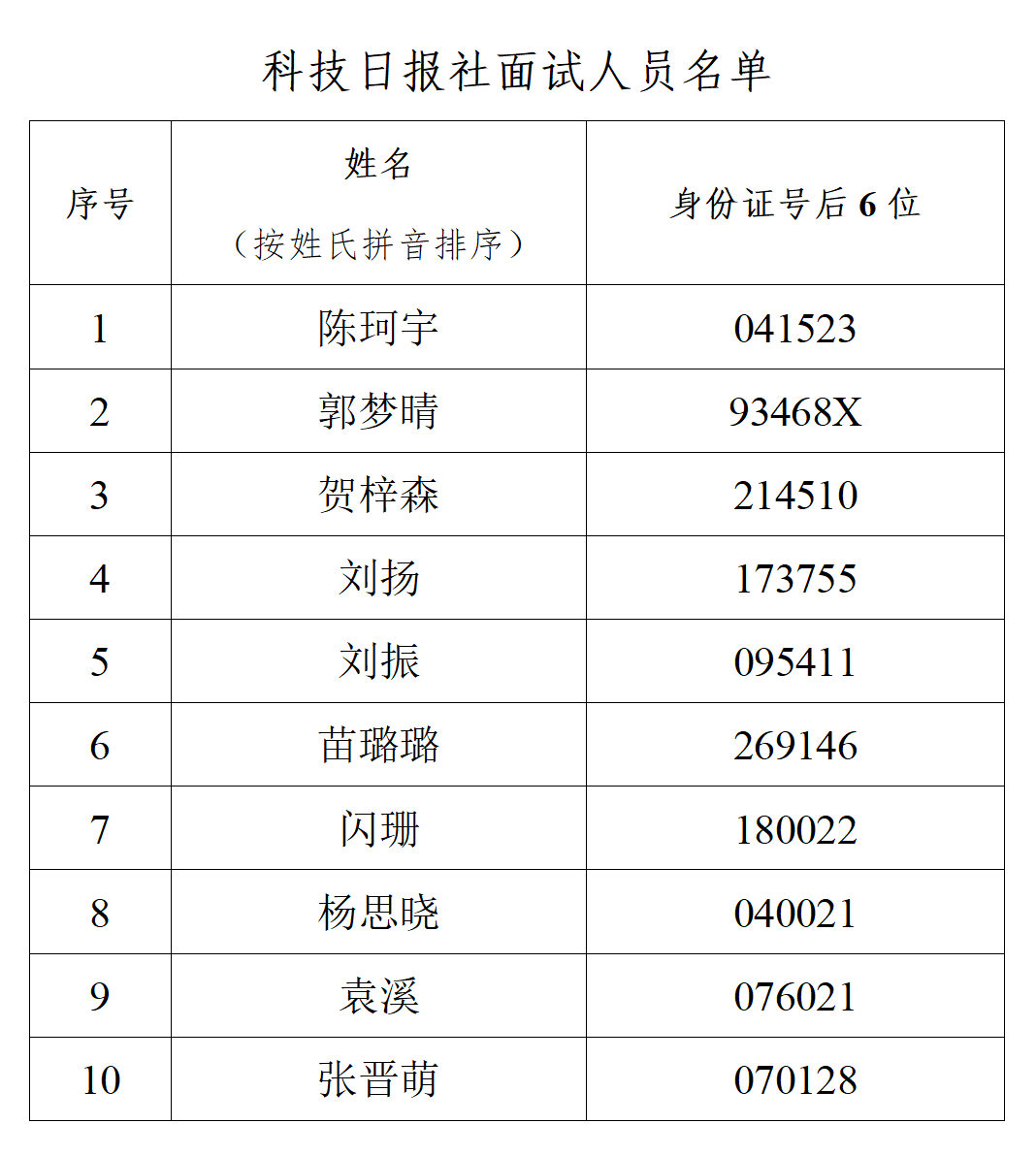 根據(jù)筆試成績,共10人參加本次面試,具體名單見附件。