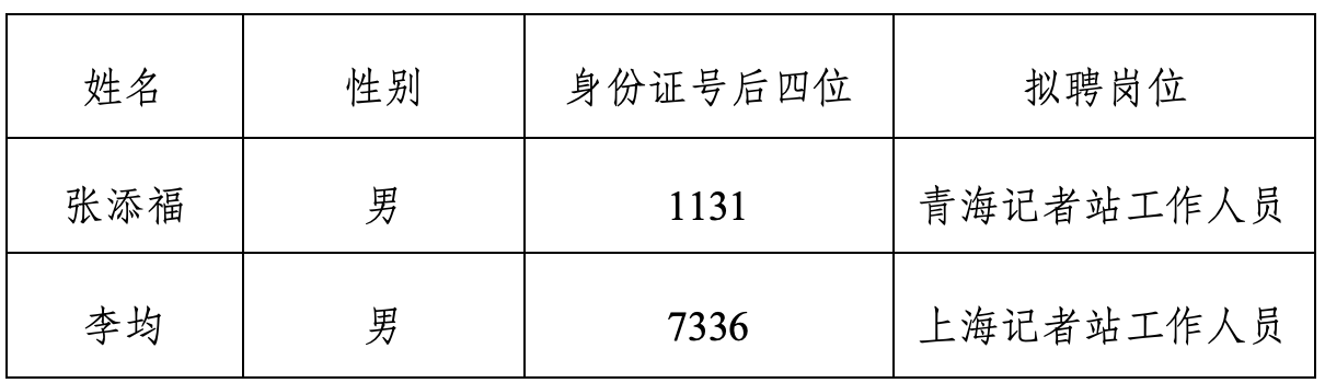根據(jù)公開招聘相關(guān)規(guī)定,科技日?qǐng)?bào)社組織開展了部分地方記者站公開招聘工作。經(jīng)資格審查、筆試、面試、考察、體檢等程序,研究確定了青海、上海記者站擬聘人員名單,現(xiàn)進(jìn)行公示。