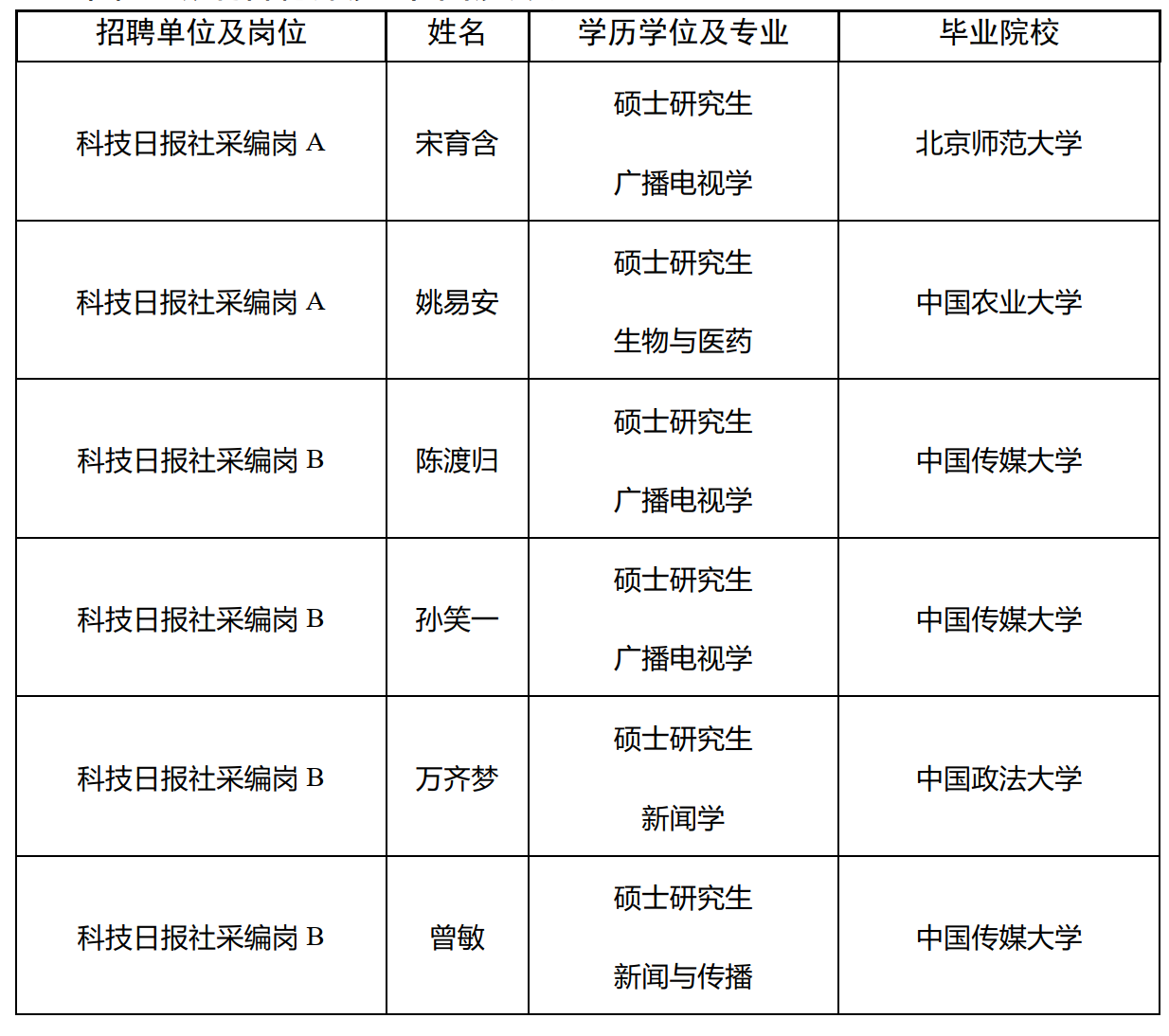 目前,尚有采編崗B(1人)正在進(jìn)行體檢考察,尚未完成招聘程序,將另行公示。