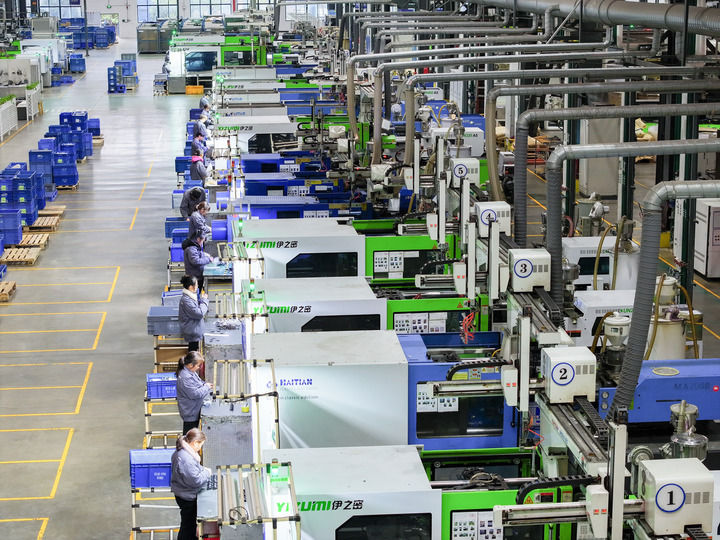 在瀏陽高新區(qū)的長沙市銀寶山新汽車零部件有限公司,工人在汽車零部件生產(chǎn)線上作業(yè)(2024年2月1日攝,無人機照片)。新華社記者 陳澤國 攝