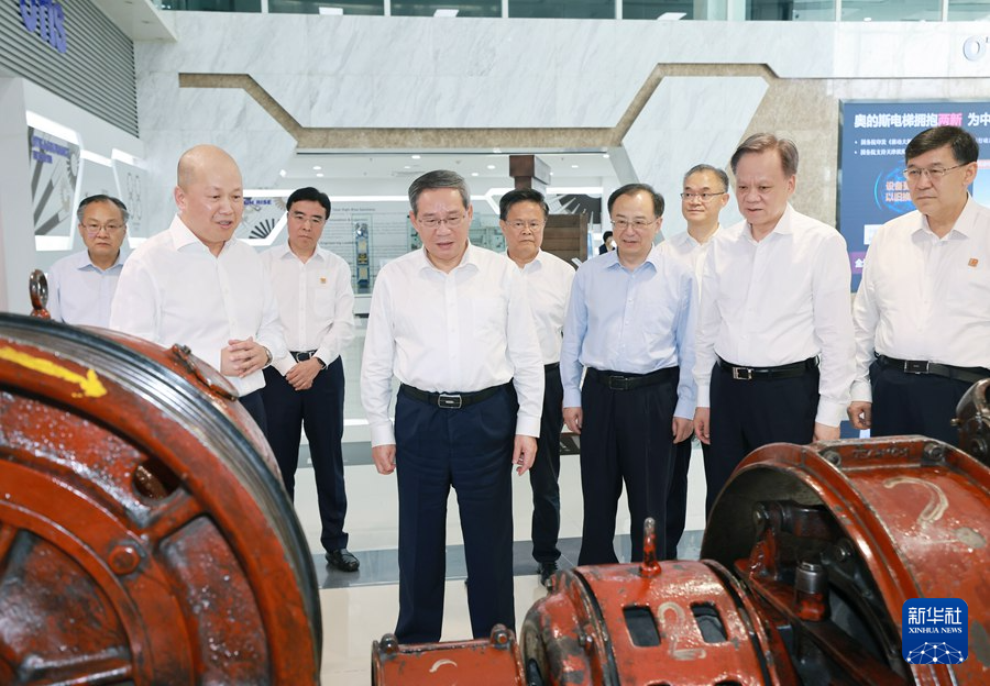 7月22日,中共中央政治局常委、國務(wù)院總理李強在天津調(diào)研。這是李強在位于濱海新區(qū)的奧的斯電梯(中國)有限公司了解企業(yè)研發(fā)情況。新華社記者 王曄 攝