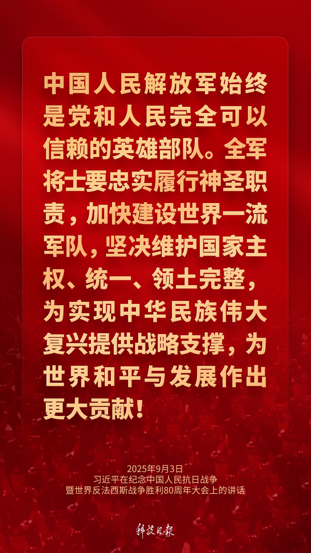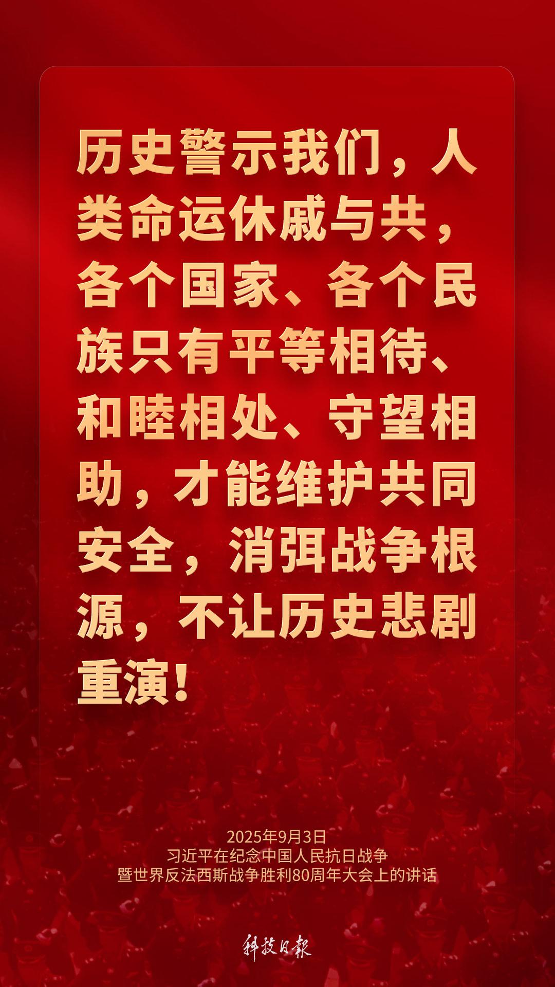 9月3日上午,紀念中國人民抗日戰(zhàn)爭暨世界反法西斯戰(zhàn)爭勝利80周年大會在北京天安門廣場隆重舉行。中共中央總書記、國家主席、中央軍委主席習近平發(fā)表重要講話強調——