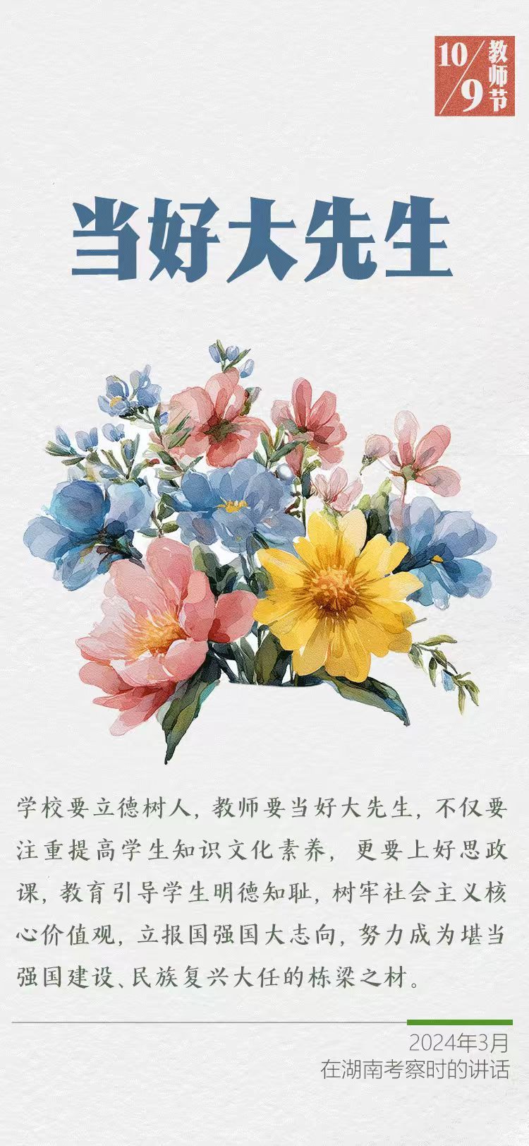 在第四十一個教師節到來之際,習近平總書記給全國特崗教師代表回信,提出殷切希望,并向全國廣大教師和教育工作者致以節日祝賀和誠摯問候。