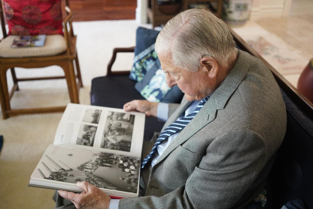 在位于美國舊金山灣區的家中,耄耋之年的伊斯特布魯克接受新華社記者專訪時,特意翻出了一張日本在“密蘇里”號戰列艦上簽署無條件投降書的老照片,用手指著照片中甲板上軍官站立的一側,“史迪威就在這里”。