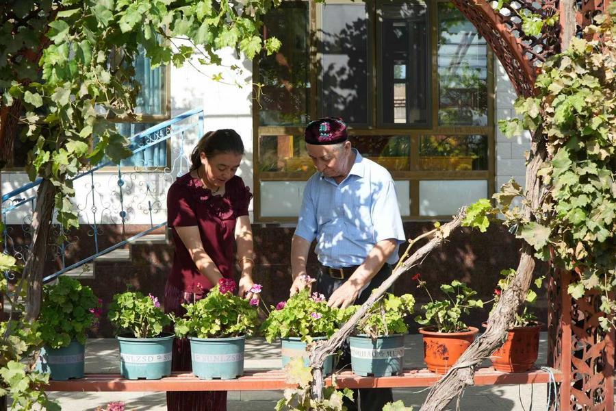 初秋的陽光把村子曬得暖融融,順著村民引路,記者見到了村里“名人”,73歲的買買提江·吾買爾。他正在自家院里和女兒講起在北京參加閱兵觀禮的感受。老人眼神里滿是鄭重:“我不是一個人去,是帶著全村各族鄉(xiāng)親的心意去。”這個維吾爾族老黨員,1973年入黨時許下的“一輩子跟黨走,為黨工作,為人民服務(wù)”的誓言,早已刻進了骨子里。