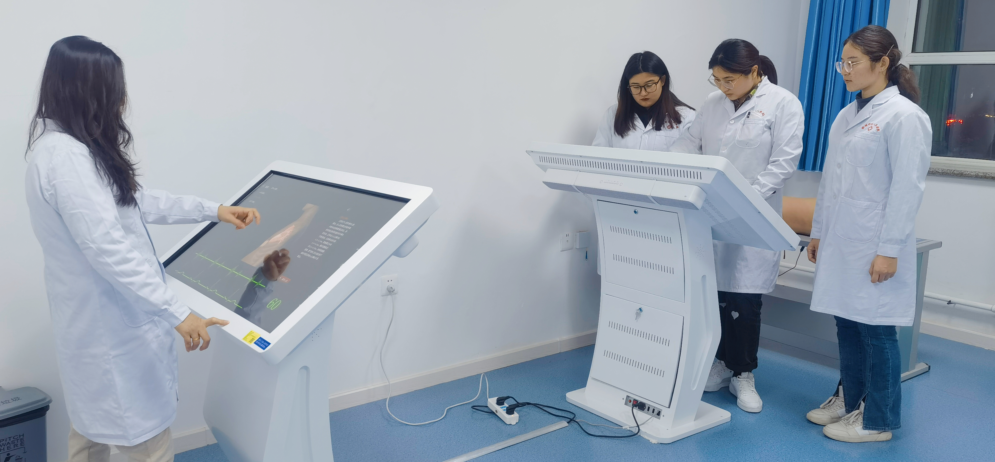 "In the past, while teaching, the lecturers played taped symptomatic sounds made by patients as well as corresponding sounds made by healthy people. The medical students would listen to the sounds to gauge the symptoms and the differences," said Huang Hui, director of the research and education department. Huang came to Tacheng from Liaoning's Anshan city in 2021.