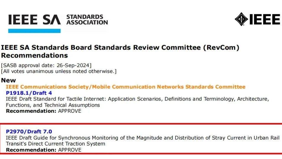 Recently, the Institute of Electrical and Electronics Engineers (IEEE) Standards Review Committee passed an international standard on the monitoring of stray current in urban rail transit, formulated by the Hubei Electric Power Research Institute (EPRI) of State Grid Corporation.