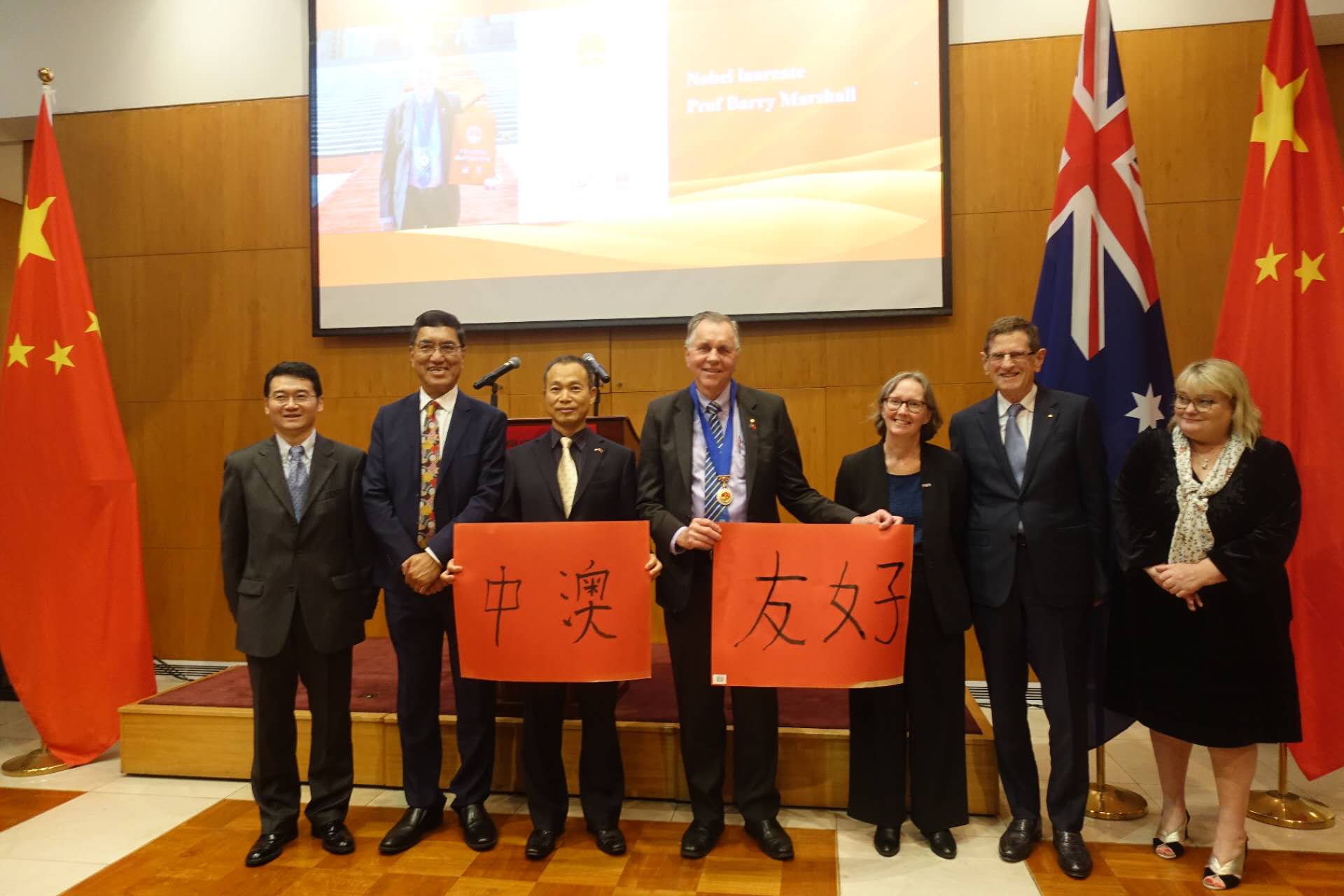 On August 15, a special reception was held by the Consul-General of the People's Republic of China in Perth Long Dingbin, to celebrate Western Australian Nobel Laureate Prof Barry Marshall's winning China International Science and Technology Cooperation Award 2023.