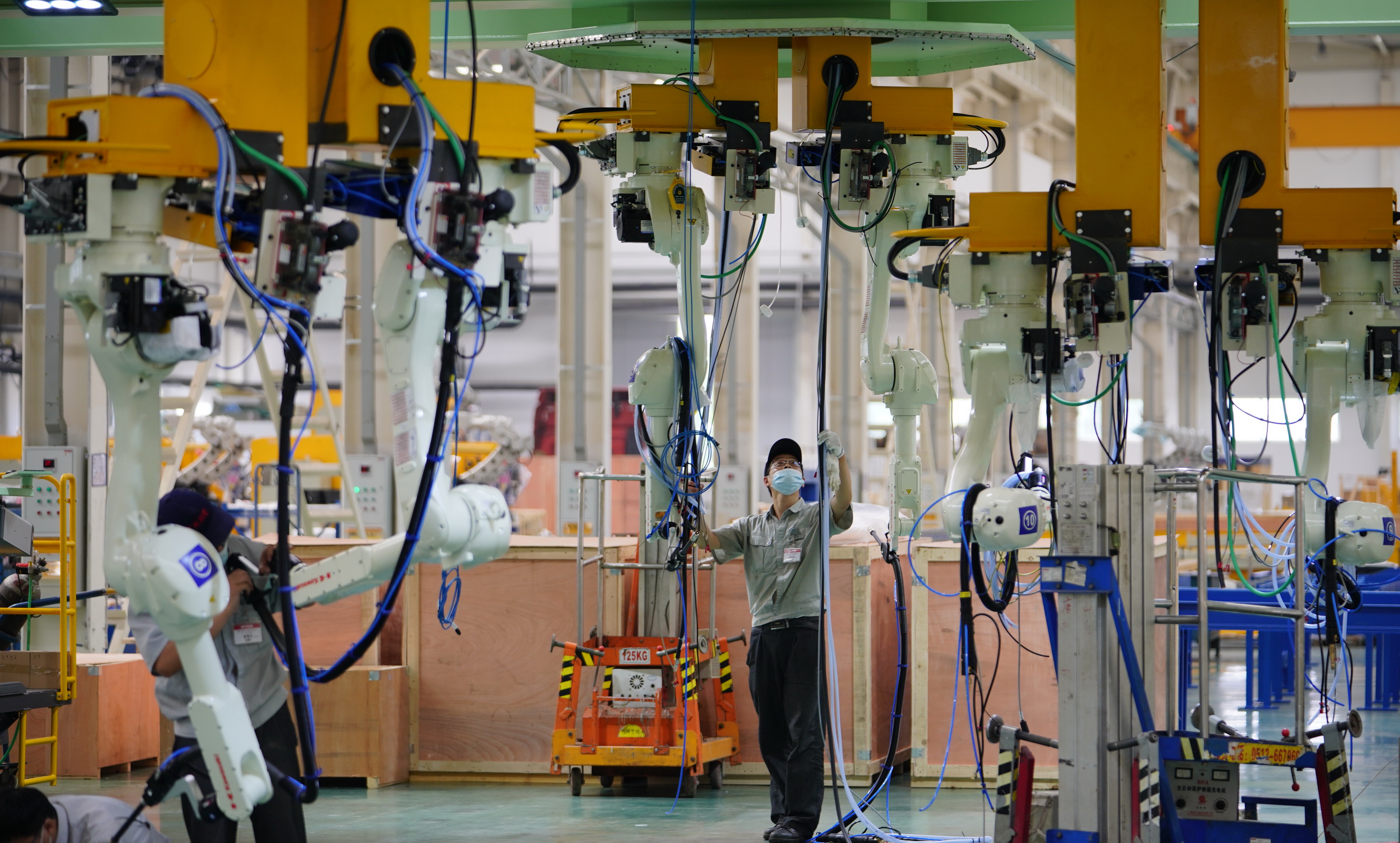 Walking into the manufacturing center of Tangshan Robot Industry Base is like entering another world, as technicians rush about testing robot products that include flexible two-arm robots and wide-vision 3D industrial cameras.
