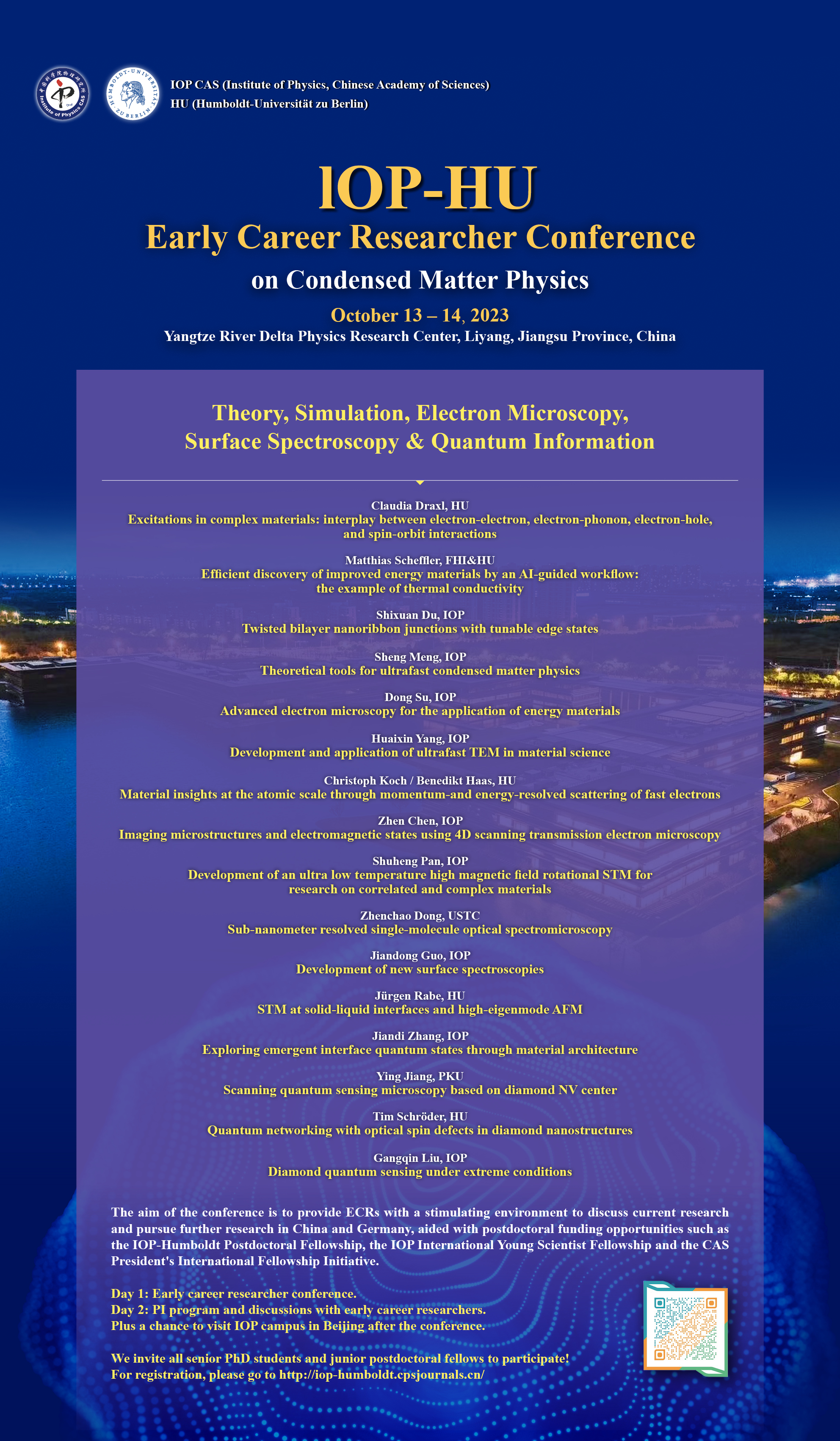 The IOP-HU early career researcher conference will be held in Liyang city,east China's Jiangsu province on October 12-14.