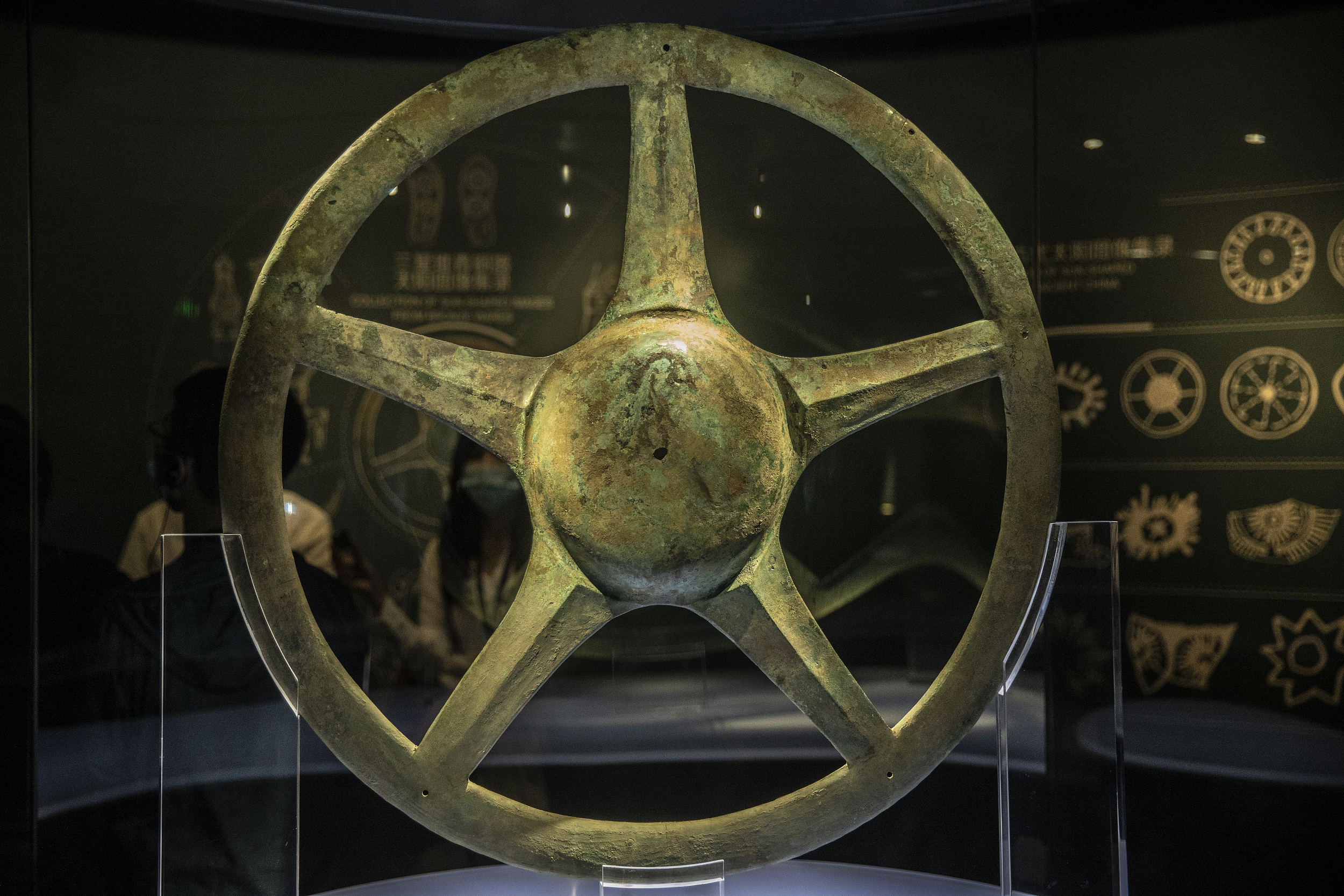 A bronze sun-shaped device, unearthed at the Sanxingdui Ruins in Sichuan province, has a history of more than 3,000 years. The circular device, around 84 cm in diameter, has a protruding center like the sun. Five arms are radially connected to the surrounding halo. The circular hole in the center of the device and five equally spaced circular holes on the halo are all used for fixing purposes.