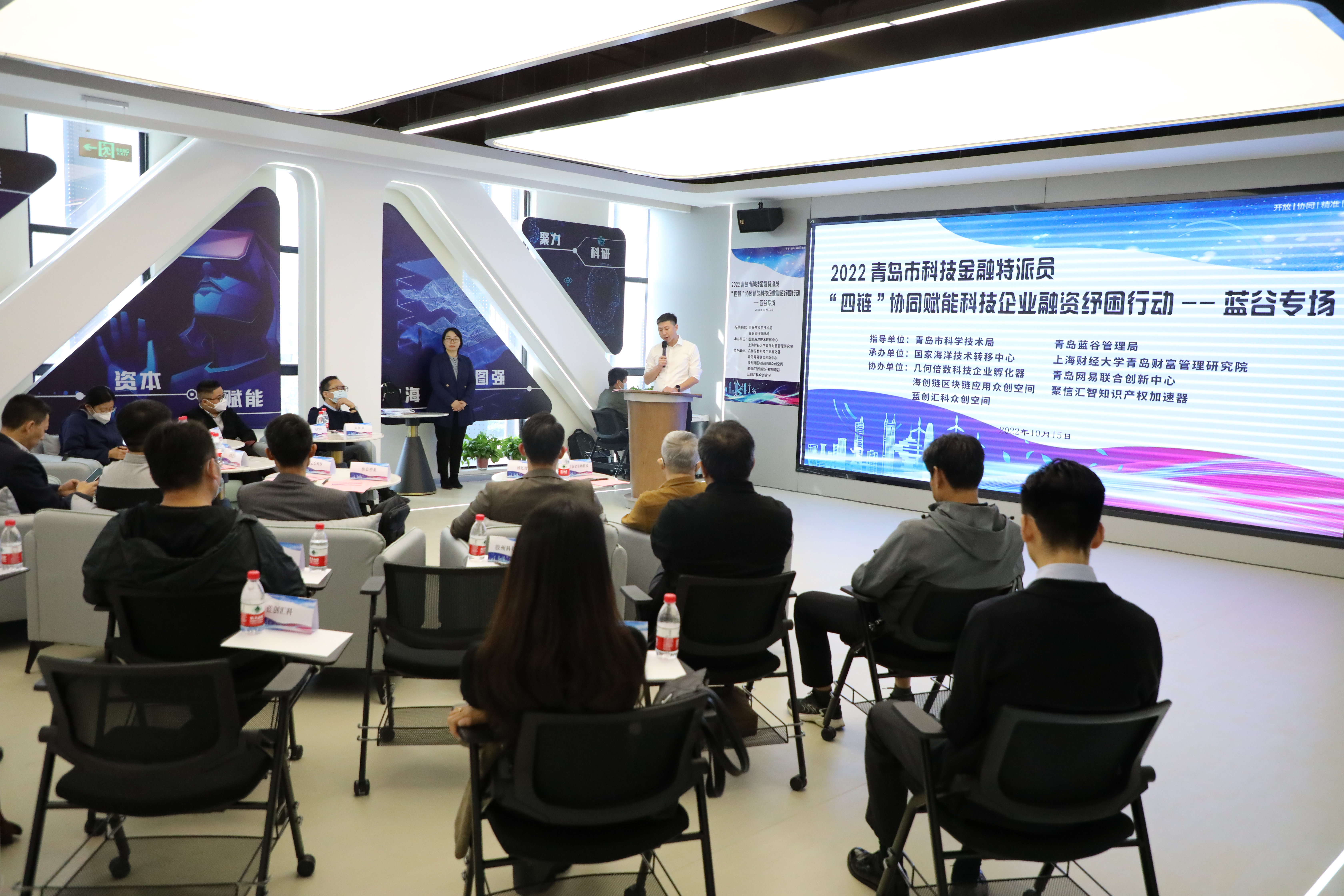 10月15日,一場主題為“謀科技就是謀發展,抓創新就是抓未來”的科技金融特派員“四鏈”協同賦能科技企業融資紓困行動,在青島藍谷“人才之家”路演大廳成功舉辦。