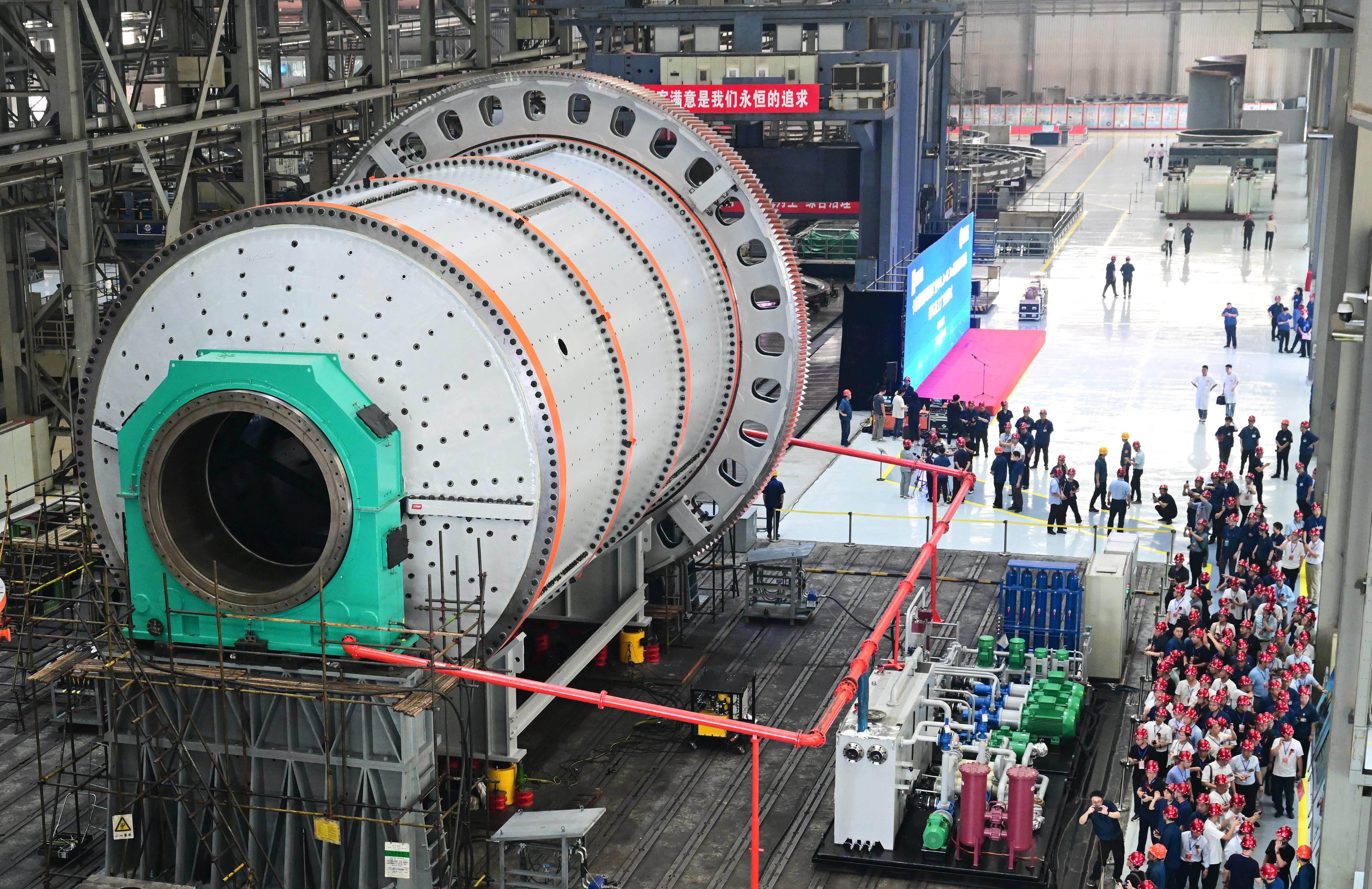 該球磨機由中信重工機械股份有限公司(以下簡稱中信重工)自主研制,直徑8.2米、長12.7米,突破了礦山重型裝備制造極限,達到了目前國際高端大型碎磨裝備的先進水平。