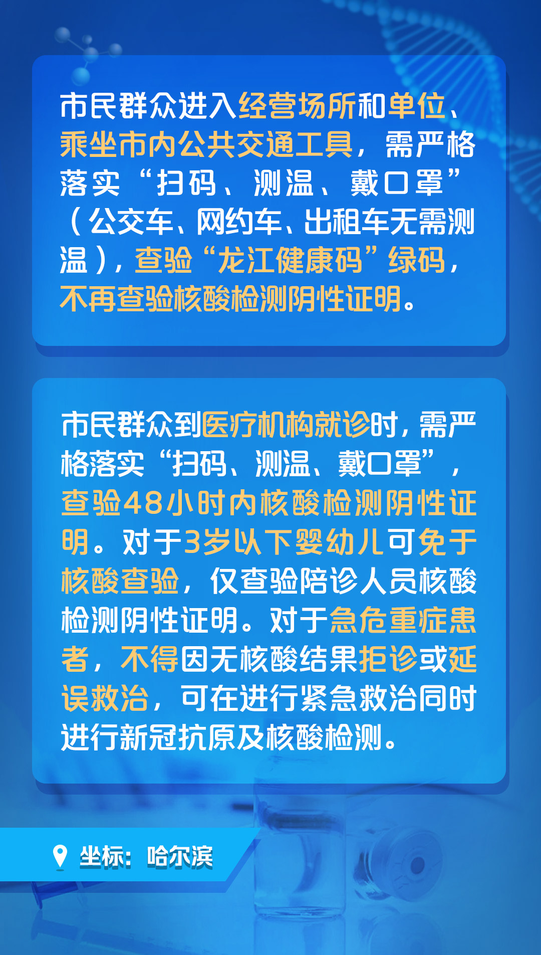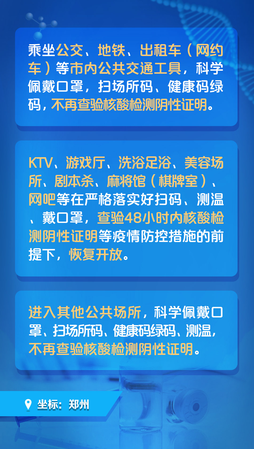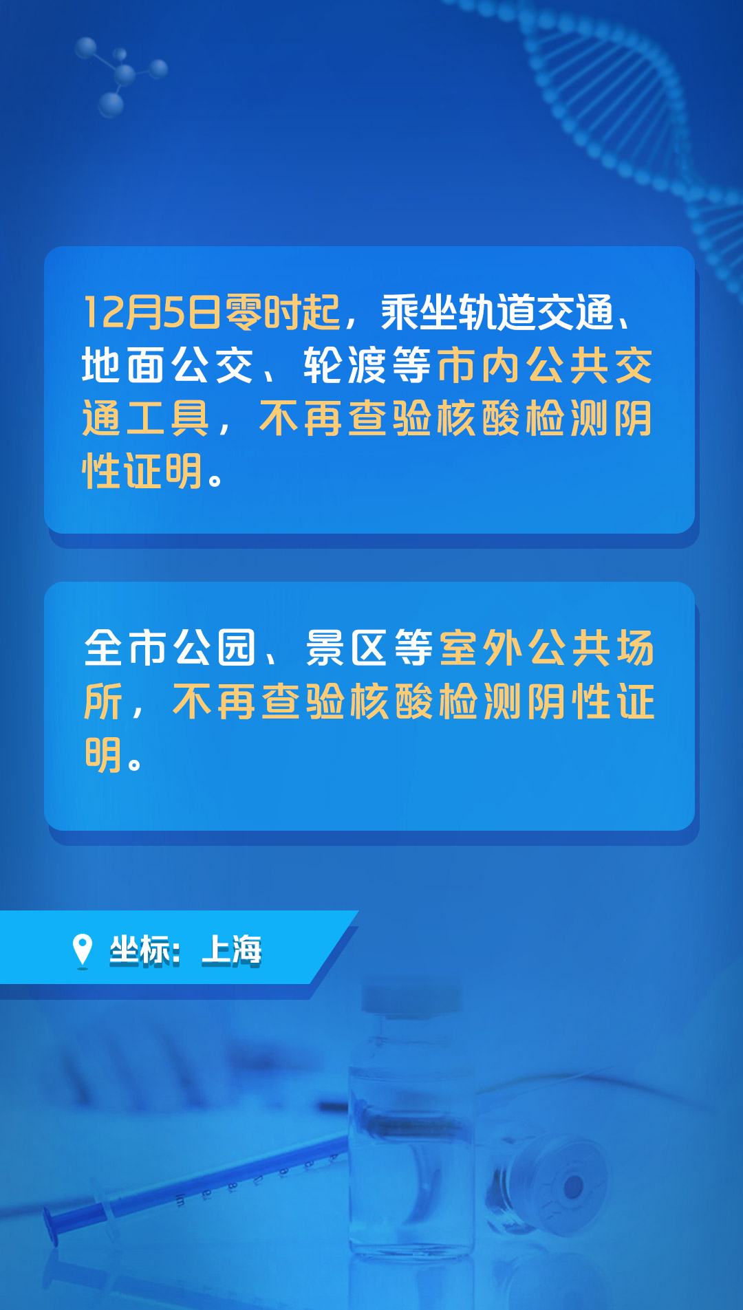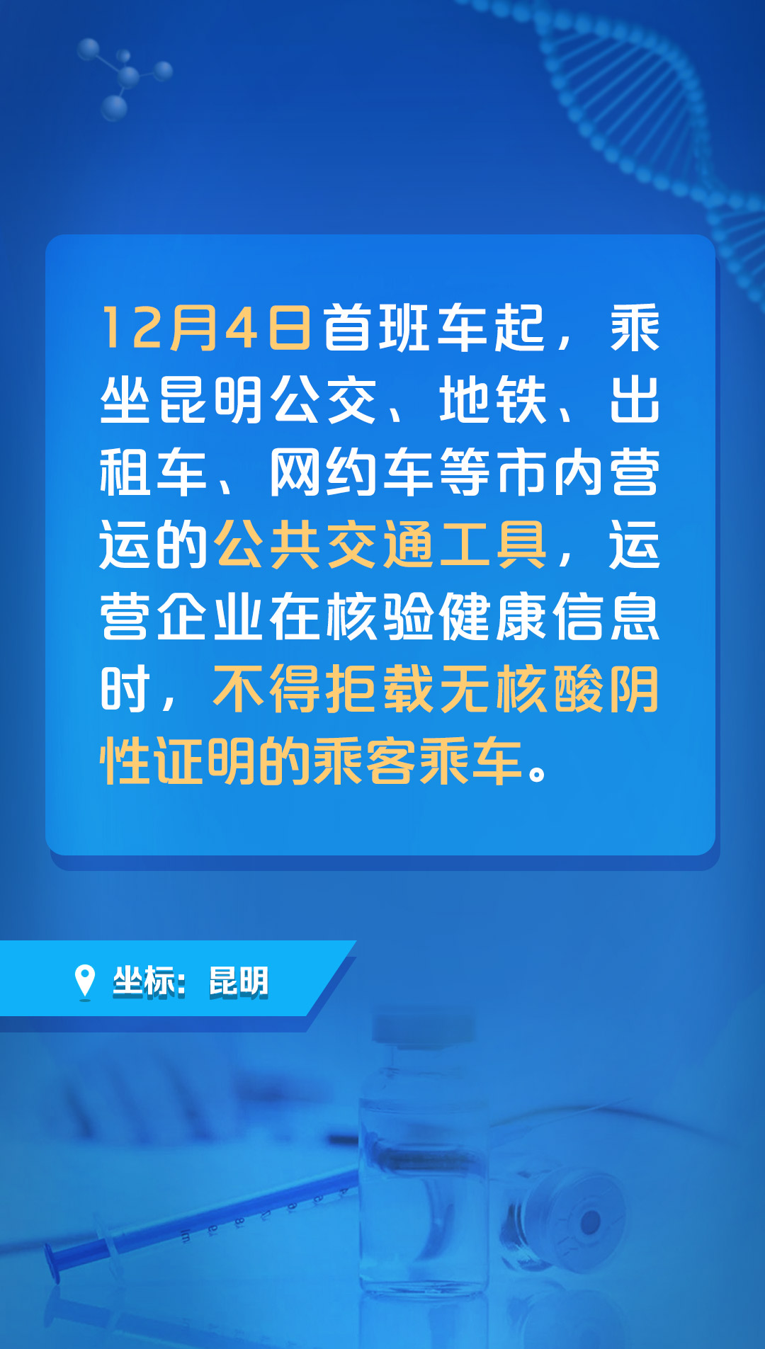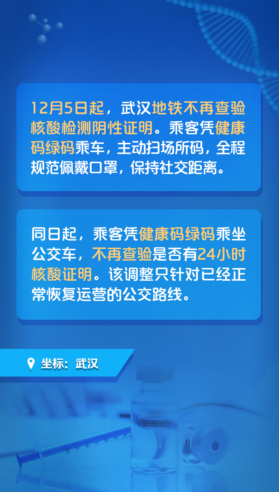 “乘坐軌道交通、地面公交、輪渡等市內公共交通工具,不再查驗核酸檢測陰性證明。”“市民群眾進入經營場所和單位、乘坐市內公共交通工具,不再查驗核酸檢測陰性證明。”……上海、武漢、鄭州、哈爾濱、昆明等地乘坐公共交通不再查驗核酸。戳圖了解,關注科技日報,及時了解最新疫情防控情況!