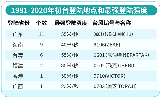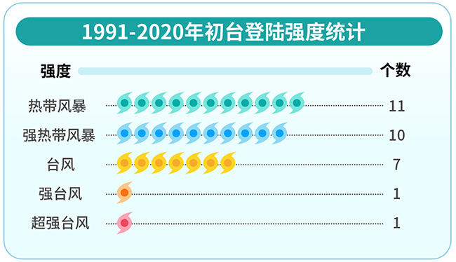 1991-2020年初臺登陸強度統計。丁茜制圖?新華社發
