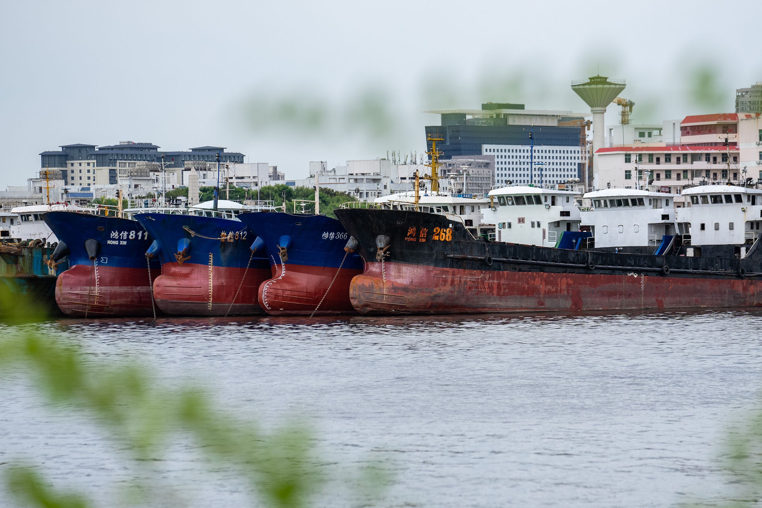 2023年7月16日,海口,不少船舶停泊在海甸溪,防范臺風“泰利”。視覺中國供圖