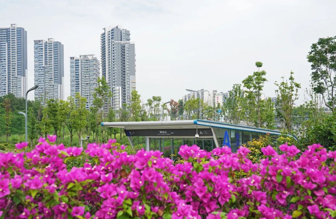 地鐵口紫薇花盛開。天府新區供圖