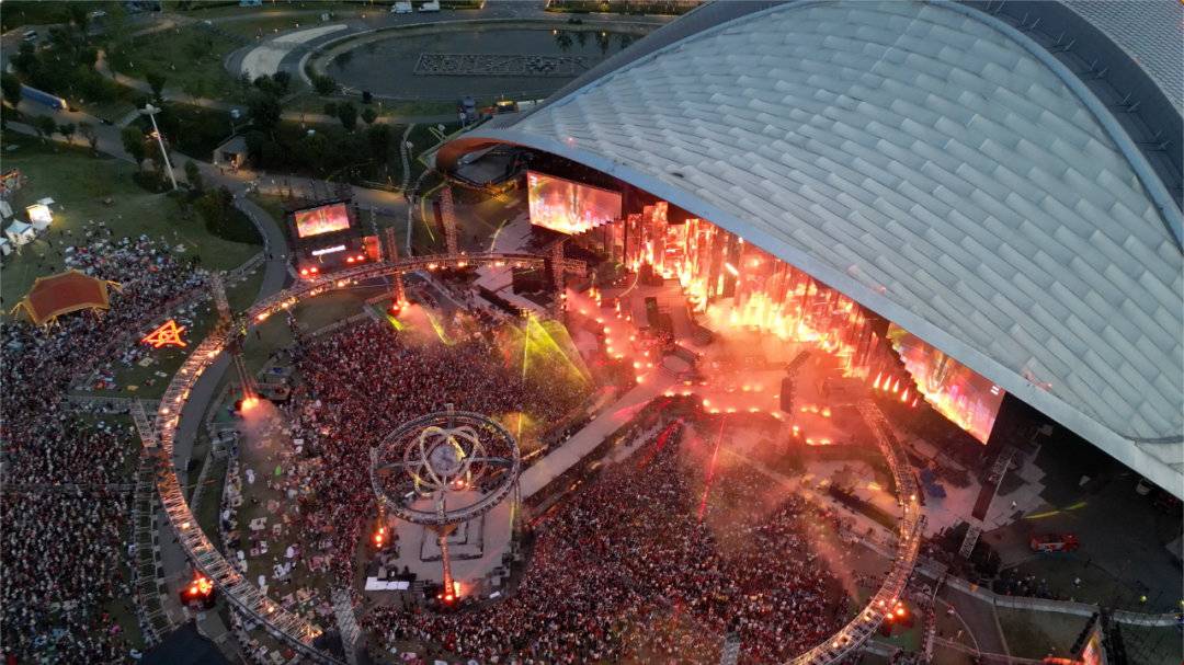 在場(chǎng)地選擇方面,選址成都露天音樂公園,截至目前,暫無世界級(jí)體育運(yùn)動(dòng)盛會(huì)的閉幕式演出場(chǎng)地是在運(yùn)動(dòng)場(chǎng)之外的闊野舉辦。可以說,成都大運(yùn)會(huì)閉幕式在選址這一點(diǎn)上就已實(shí)現(xiàn)了“破圈”。它體現(xiàn)了成都公園城市的特點(diǎn),也體現(xiàn)了團(tuán)隊(duì)想展現(xiàn)的目標(biāo)——借助公園,讓歡樂延伸到更遠(yuǎn)的地方。