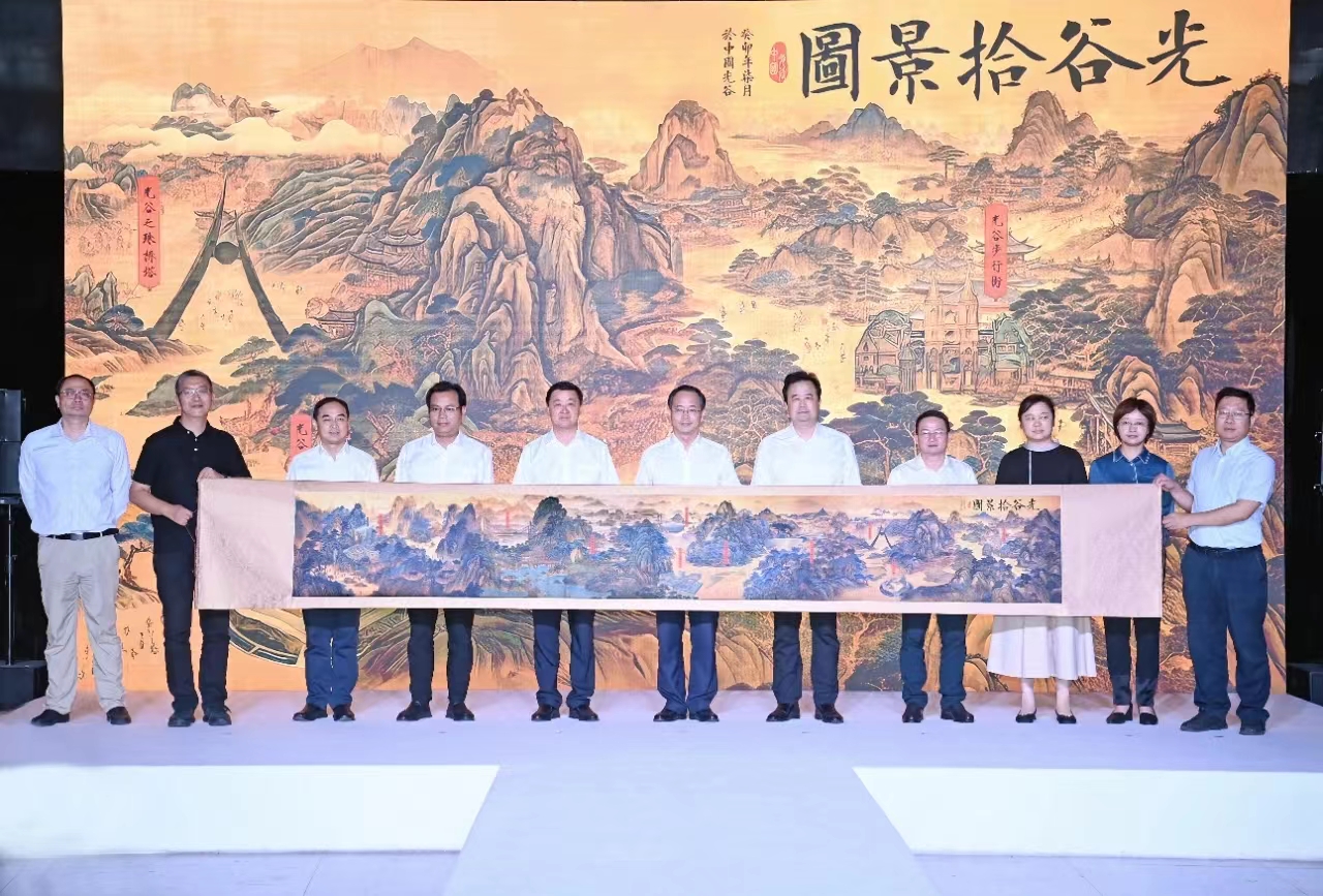 《光谷十景》由AI創作,在短短40天時間內,通過將北宋屈鼎《夏山圖》、唐代李思訓《江帆樓閣圖》等多位唐宋水墨大家作品輸入人工智能系統,并結合馬蹄蓮、光谷“星河”廣場、光谷之珠等十余個光谷地標性建筑,以國風版的“科技新城”為創作理念,AI系統自主生成這幅長約6米的水墨畫。