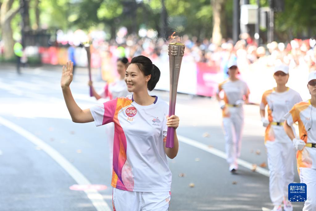 9月8日,火炬手惠若琪在火炬傳遞中。新華社記者 黃宗治 攝