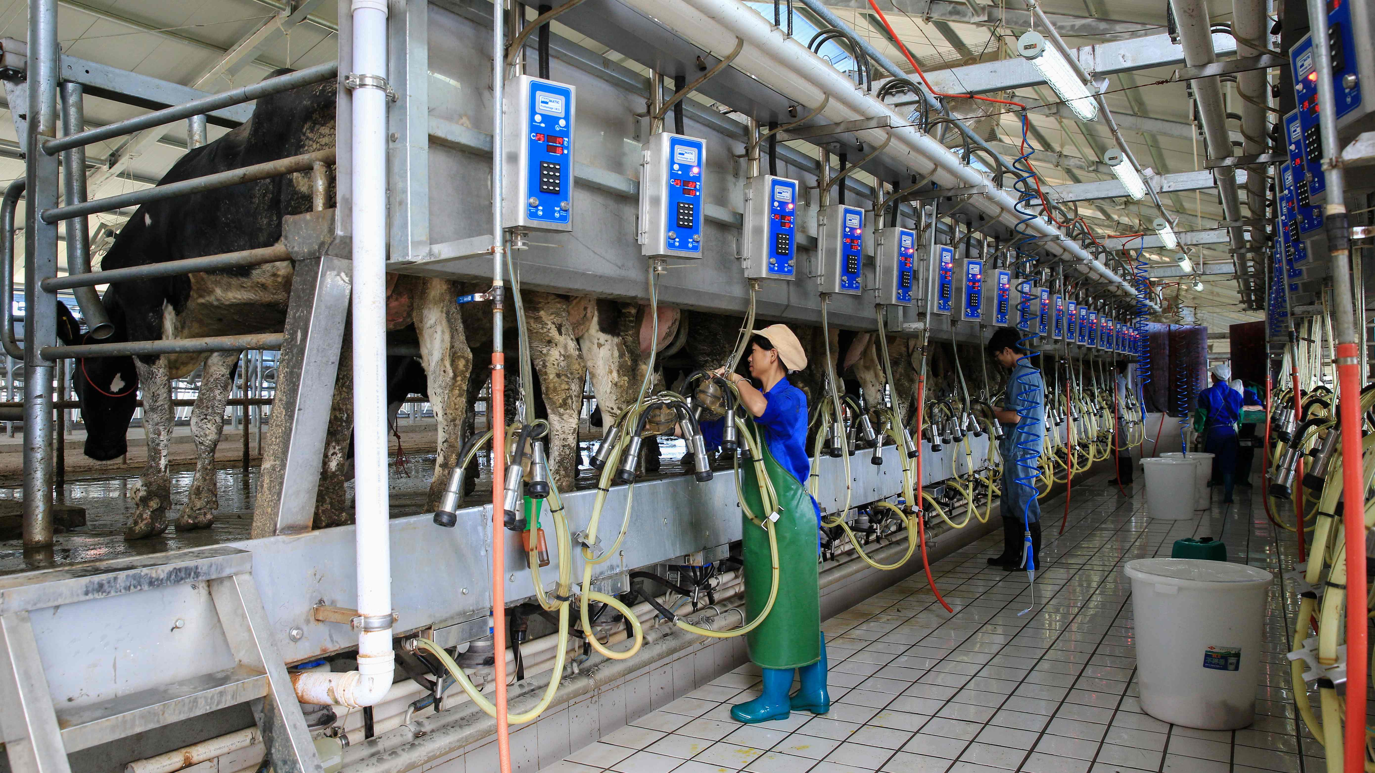 鐘山鎮溫氏奶牛基地自動化擠奶車間。黎遠偉 攝