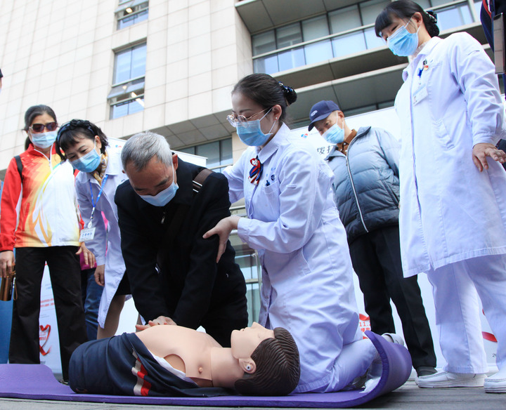 部分醫(yī)院開展義診活動(dòng),指導(dǎo)市民進(jìn)行心肺復(fù)蘇演練。新華社發(fā)