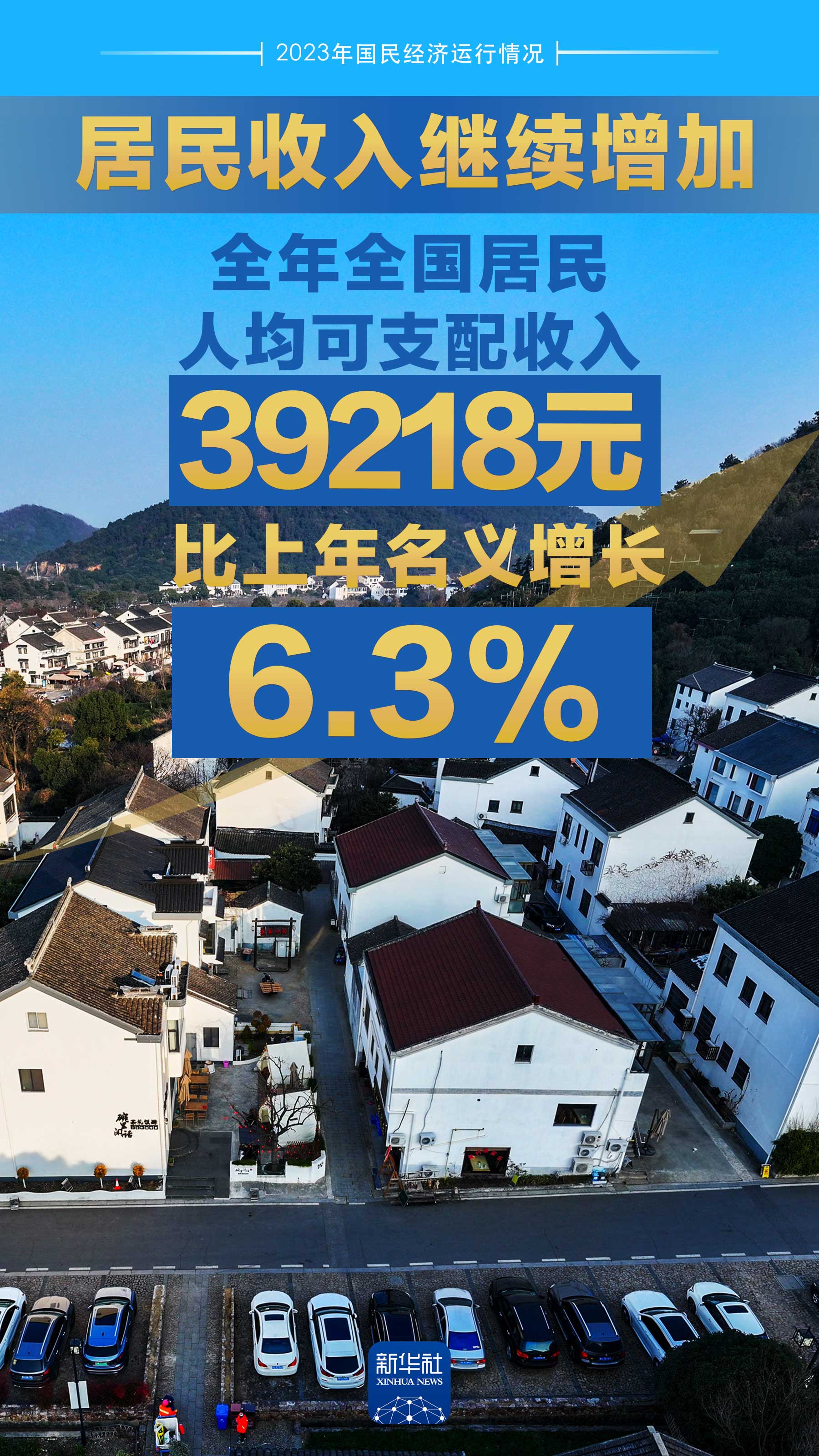 全年全國居民人均可支配收入比上年名義增長6.3%