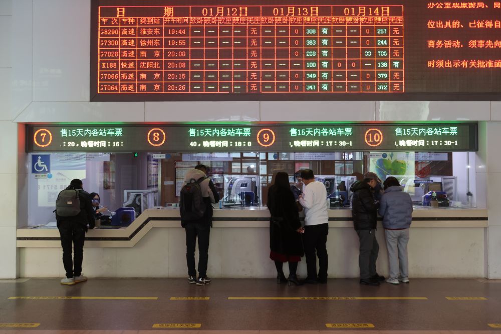 1月12日,春運火車票開始發售,旅客在上海火車站售票大廳購買火車票。?新華社記者 王翔 攝