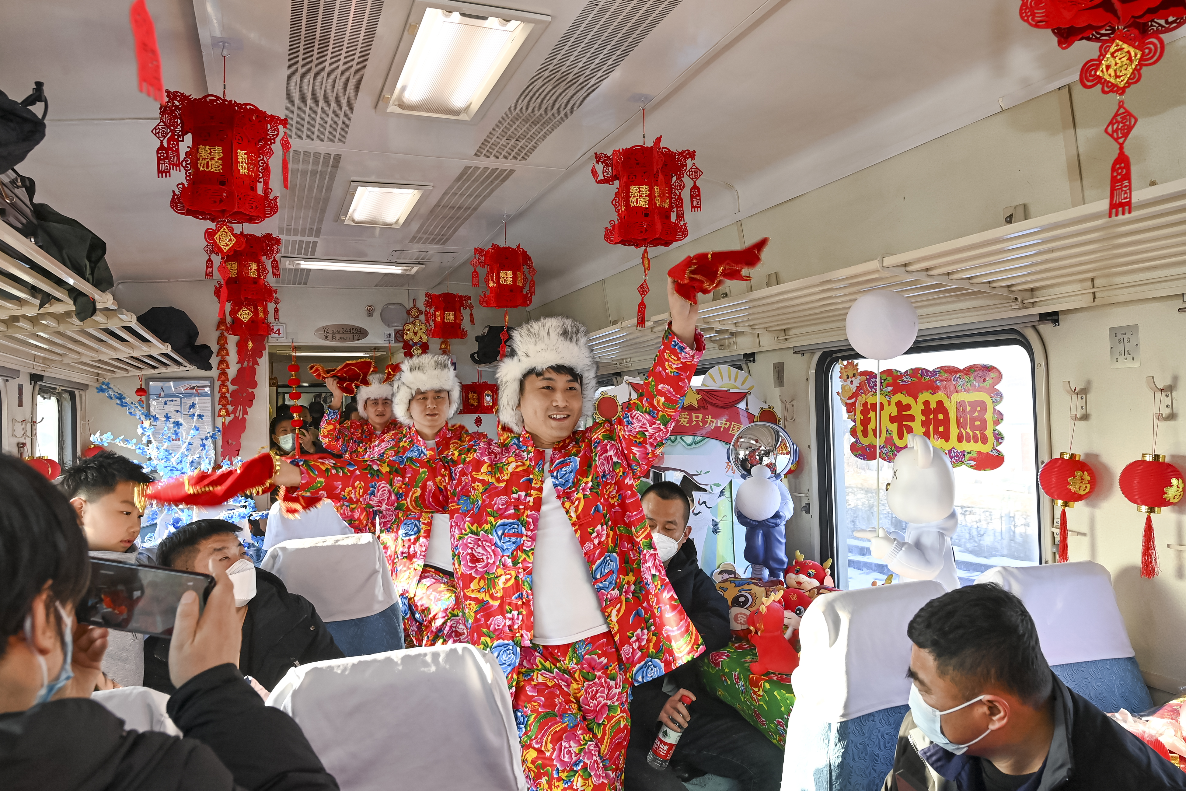 哈爾濱局集團(tuán)公司為旅客們準(zhǔn)備了冰箱貼、紀(jì)念幣,在列車上開展秧歌,舞蹈等文藝活動,讓年味更濃郁。來自杭州的旅客呂思源被車廂裝飾吸引:“特別喜歡東北,所以想來看看,這次坐車,正好遇見了列車大集,感覺非常熱鬧,很新穎,給這次旅行留下了難忘的回憶。”