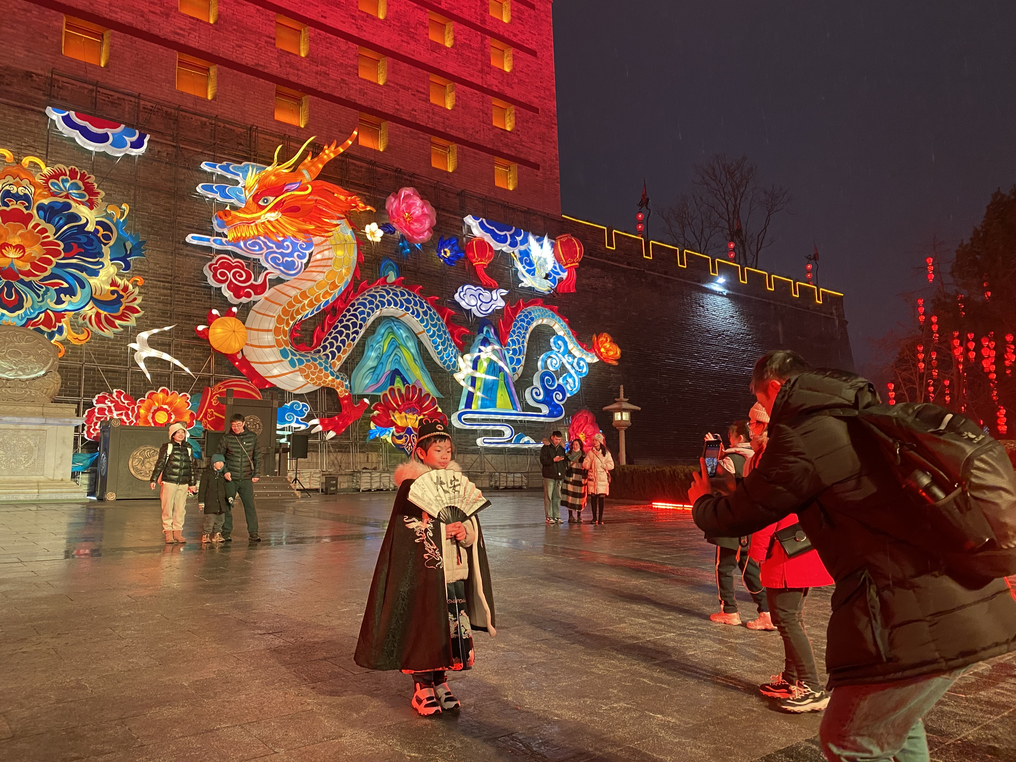 既有“中華第一龍”美稱的紅山玉龍,還有陜西歷史博物館的鎮(zhèn)館之寶——赤金走龍……各具特色的37條中華龍燈組齊聚西安城墻,有機(jī)融合了經(jīng)典古詩詞與非遺制燈工藝,營造出了“一步一絕句,一燈一詩詞;龍行五千年,華燈滿城彩”的節(jié)慶文化氛圍。