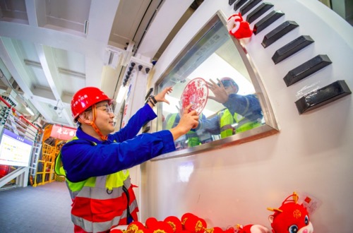為保障盾構(gòu)機正常掘進,很多設備、材料必須按時到位。“那就在工地過一個特殊的春節(jié)?!蔽镔Y部副部長孫永磊、綜合辦公室主任劉永霞這對“95后”夫妻說,這是他倆在施工一線跨年的理由。