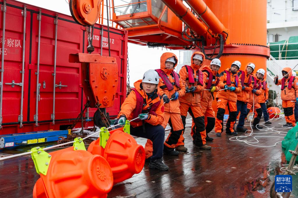 北京時間1月6日,中國第40次南極考察隊在阿蒙森海成功布放深水生態潛標,這也是中國首次在極地布放生態潛標。新華社記者 周圓 攝
