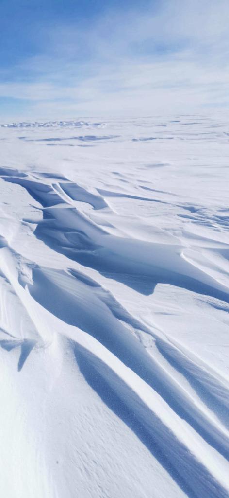 南極麒麟冰下湖的冰面雪丘。新華社發(李傳金攝)