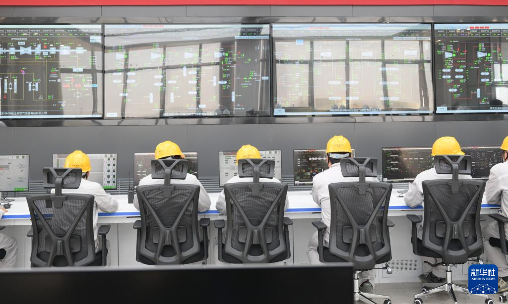 4月9日,工作人員在應城300兆瓦級壓縮空氣儲能電站集控室工作。新華社記者 程敏 攝