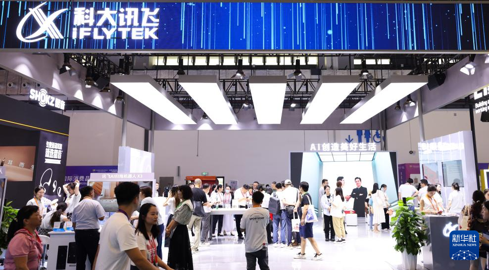 這是4月14日拍攝的消博會上的科大訊飛展臺。新華社記者 楊冠宇 攝