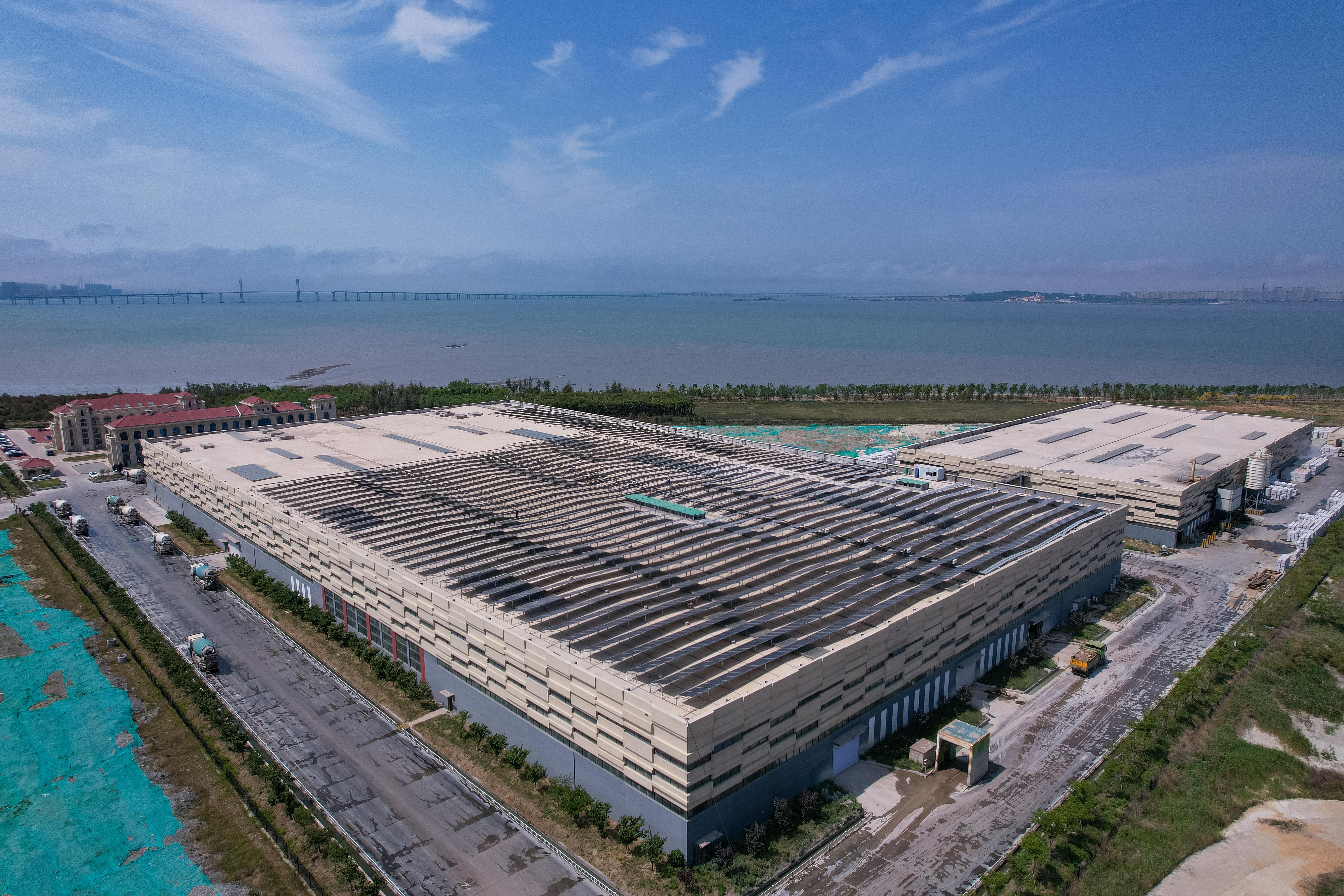 5月22日,位于青島市李滄區的青島綠帆零碳產業園里,一排排太陽能光伏板在廠房頂部整齊排列。張鷹 攝