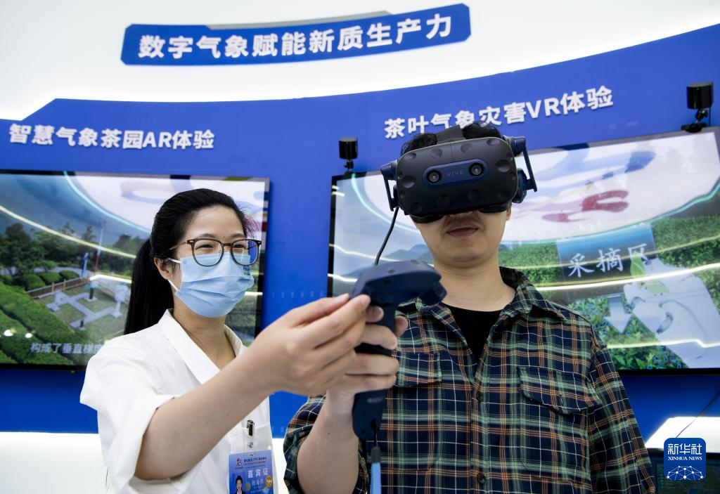 5月23日,一名觀眾(右)在數字氣象賦能新質生產力展臺上進行體驗。新華社記者 魏培全 攝