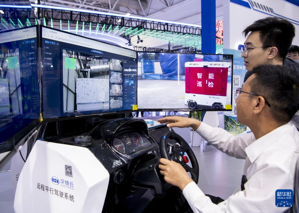 5月23日,一名觀眾(右下)在體驗遠程平行駕駛系統(tǒng)。新華社記者 魏培全 攝