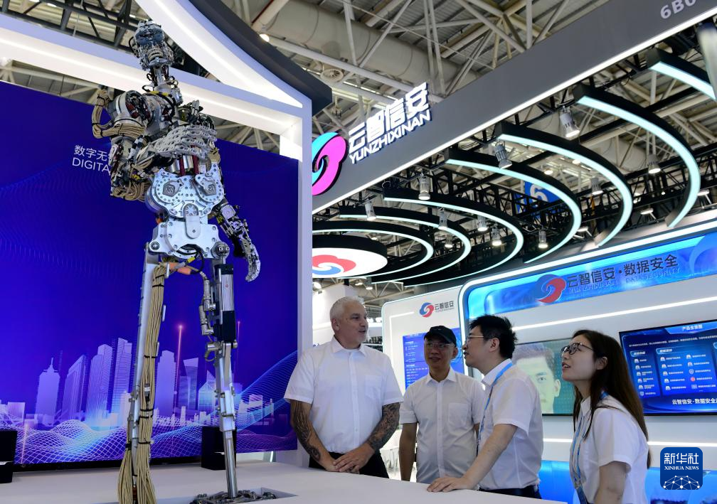5月23日,觀眾在數字無錫展臺上觀看大型仿生機器人演示。新華社記者 魏培全 攝