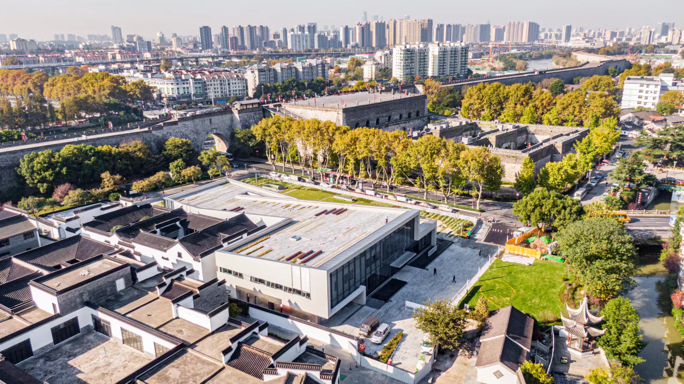 從高空俯瞰南京中華門(mén)城堡及南京城墻博物館。