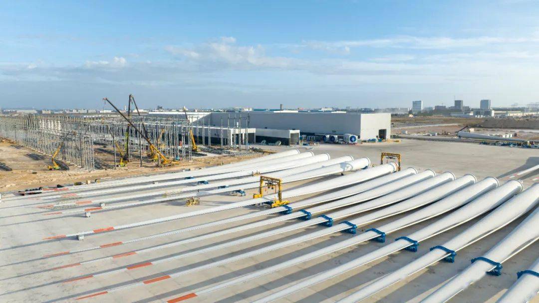 近日,在位于廣西的中馬欽州產(chǎn)業(yè)園區(qū)裝備制造產(chǎn)業(yè)園里,百米長的風(fēng)電葉片整齊地擺放在堆場,廠房里機械轟鳴、焊花飛濺,工人們緊張忙碌地生產(chǎn)風(fēng)電塔筒。
