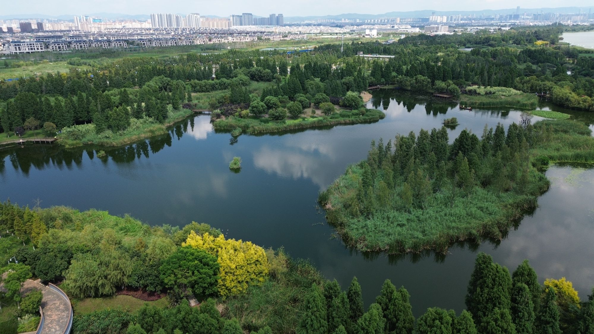 “濕地公園的建成,進一步推動了整個草海片區湖濱生態濕地的修復,還高原明珠滇池以水碧天藍的和諧。”佘國斌說,整個草海片區,已成為昆明新的“會客廳”和“后花園”,為城市營造出“水在城中,城在山中”的意境。