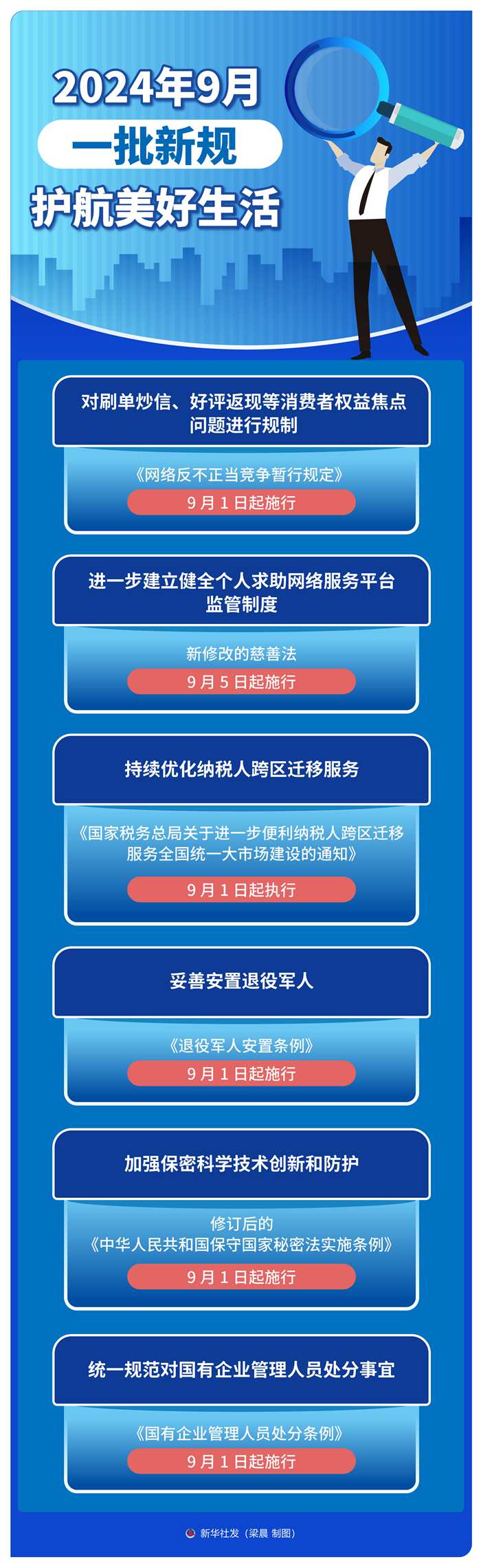 對刷單炒信、好評返現等消費者權益焦點問題進行規制,進一步建立健全個人求助網絡服務平臺監管制度,持續優化納稅人跨區遷移服務……9月,一批新規護航美好生活,一起來看!
