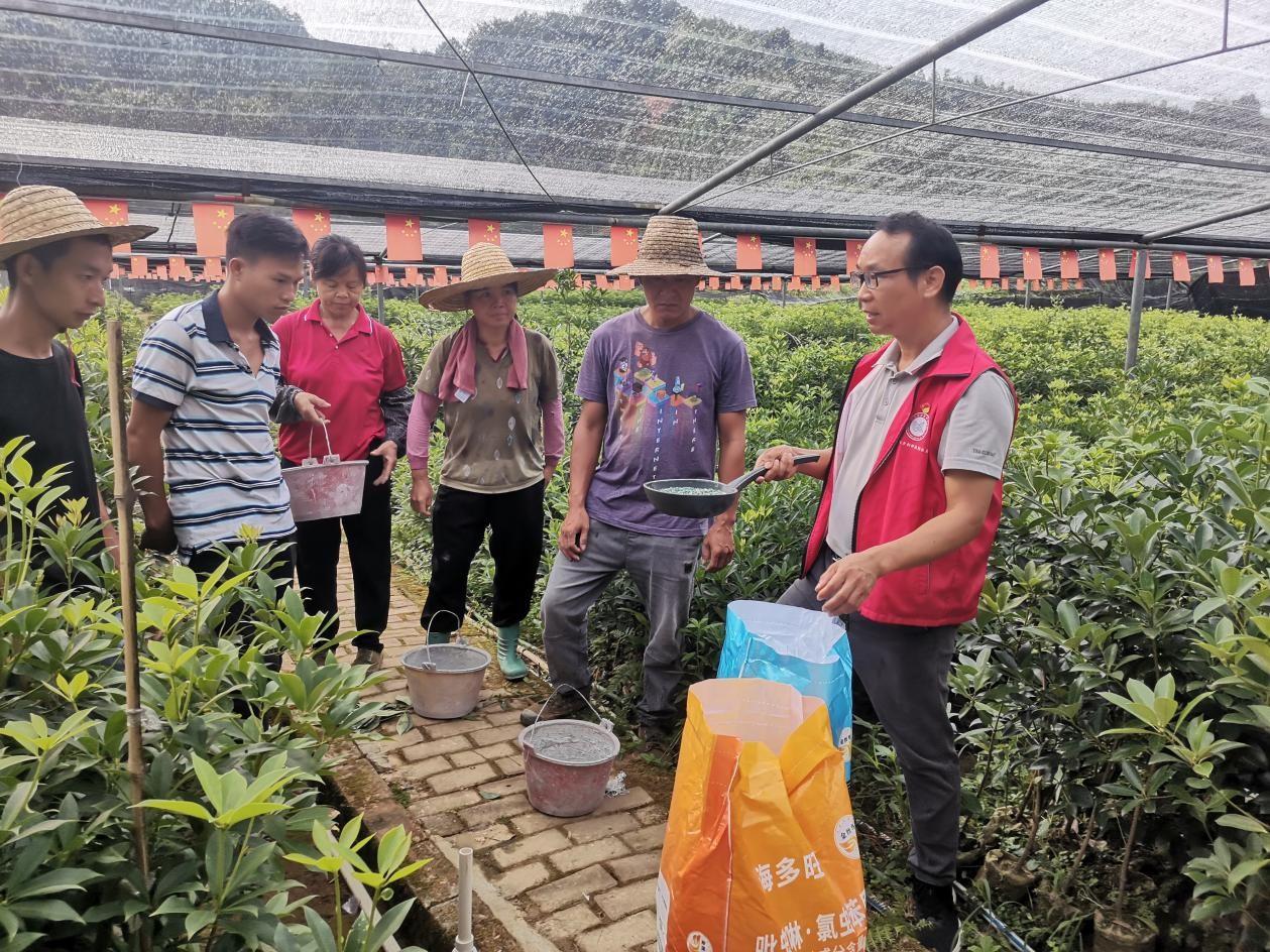 于是,郭家鋒找到了古龍鎮八角種植協會會長、藤縣古龍春雨八角種植專業合作社負責人黃敏永一起商討對策。2021年6月,在古龍鎮黨委、政府的支持下,郭家鋒牽頭成立了古龍鎮八角種植技術推廣志愿服務隊。