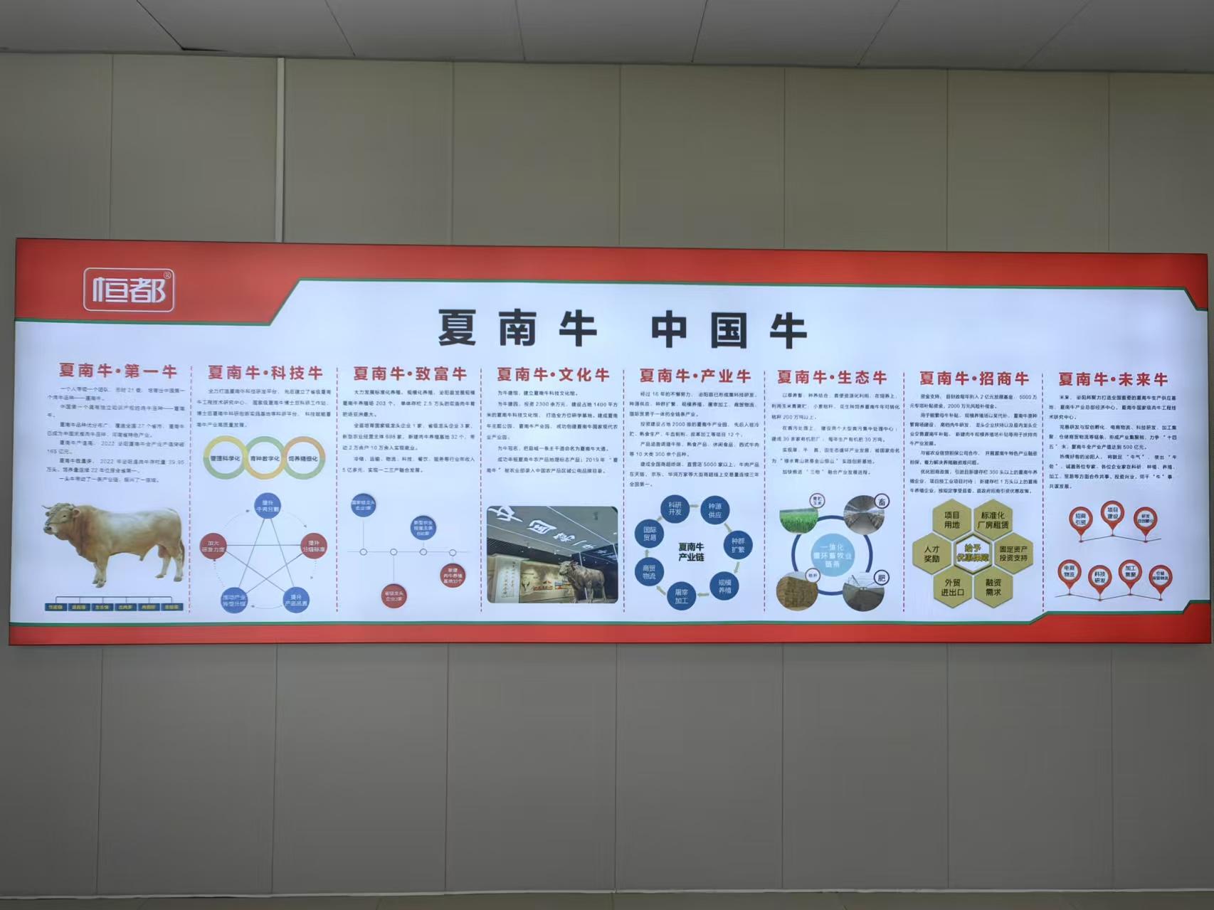 圍繞“夏南牛”,泌陽縣建立了集科技研發、種源供應、規模養殖、屠宰加工、商貿物流、國際貿易于一體的全產業鏈條。
