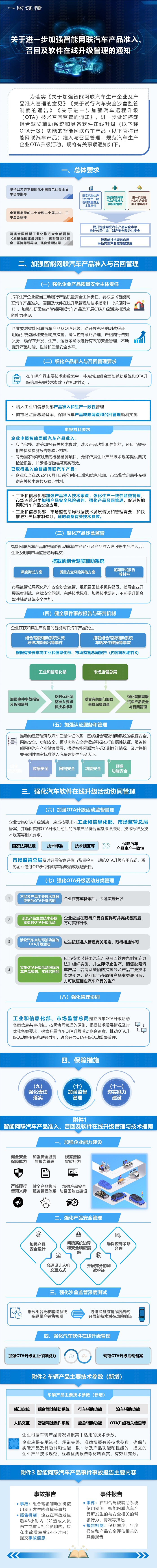 2月28日,工業和信息化部、市場監管總局聯合發布《關于進一步加強智能網聯汽車產品準入、召回及軟件在線升級管理的通知》(以下簡稱《通知》),旨在進一步規范智能網聯汽車準入、召回及軟件在線升級(OTA)管理,切實保障車輛安全,提升智能網聯汽車產品安全水平,推動汽車產業高質量發展。